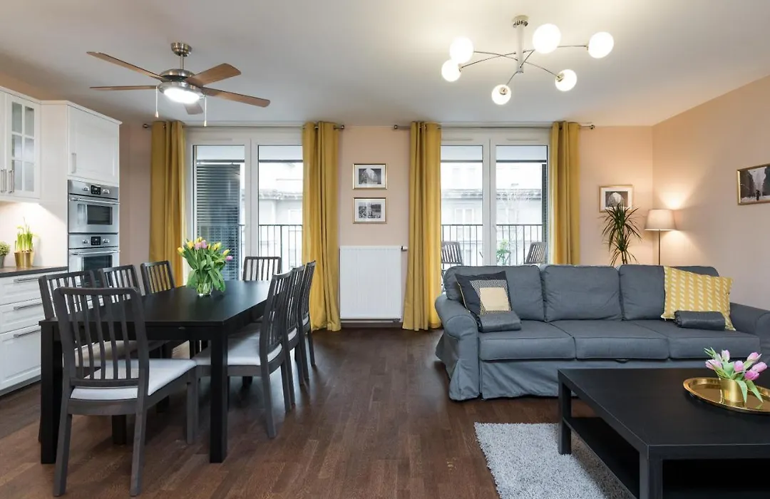 L'appartamento include utensili da cucina, una lavastoviglie e una microonde. L'appartamento Krakow Central è posizionato a 22 minuti d'auto dall'aeroporto Internazionale di Cracovia-Balice Giovanni Paolo II. Nei dintorni e in loco gli ospiti possono praticare diverse attività, tra cui escursioni a piedi, canottaggio e squash.